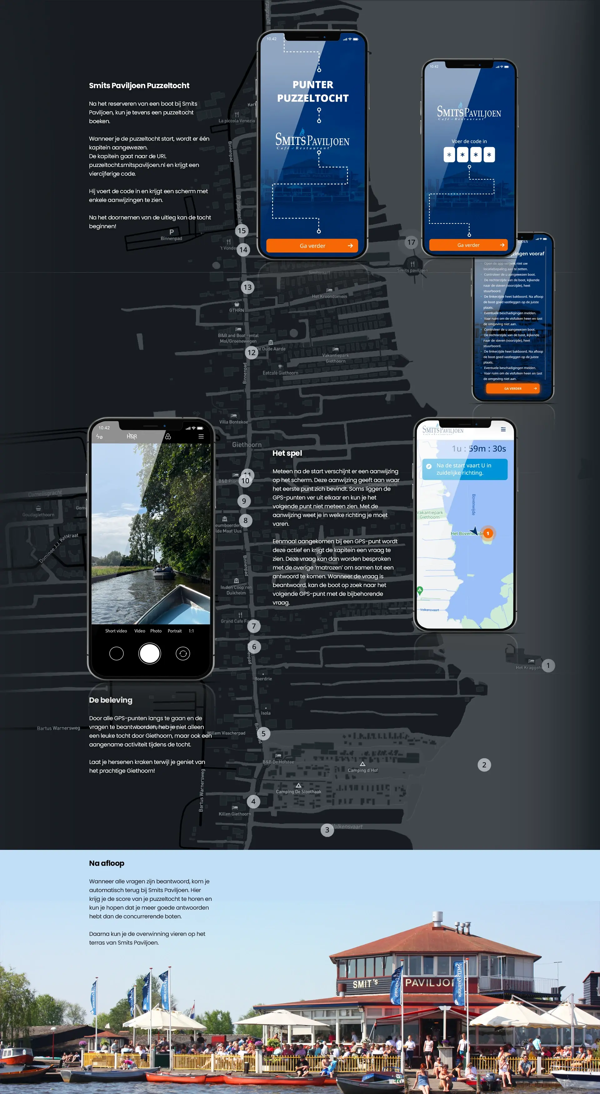 Bij Smits Paviljoen hebben we een probleem aangepakt dat de ervaring van onze puzzeltochten enigszins ouderwets maakte. Voorheen ontvingen onze klanten een papieren blaadje met daarop de vragen en aanwijzingen voor de tocht. Dit zorgde soms voor onhandigheden en misverstanden tijdens het varen.